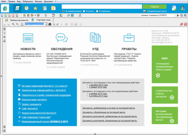 Приятно, что выбор нашего продукта часто обусловлен гарантией сохранности и защиты информации. Так, именно с этой целью в NormaCS используется шифрование хранимых и передаваемых данных. Разработчики бережно относятся к информационным потребностям пользователя, неустанно оттачивая инструменты программы и предоставляя дополнительные бесплатные сервисы. В системе реализованы и постоянно пополняются разделы с технической периодикой и официальными каталогами, бюллетенями и перечнями различных ведомств. Вот лишь неполный список новшеств, появившихся за год.