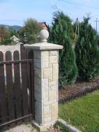 Сегодня одно из самых востребованных конструкций ограждения — забор из бетонных столбов оригинальной формы с деревянным заполнением. Забор будет выглядеть так: бетонные столбы, а между ними — деревянная "основа". Причем бетон по желанию заказчика может быть окрашен в любой цвет. Можно заказать столбы с имитацией под "дикий" необработанный камень (рустик).